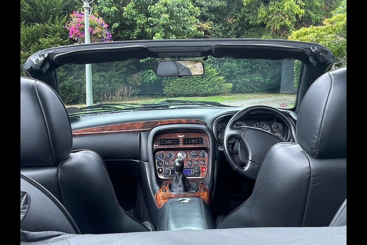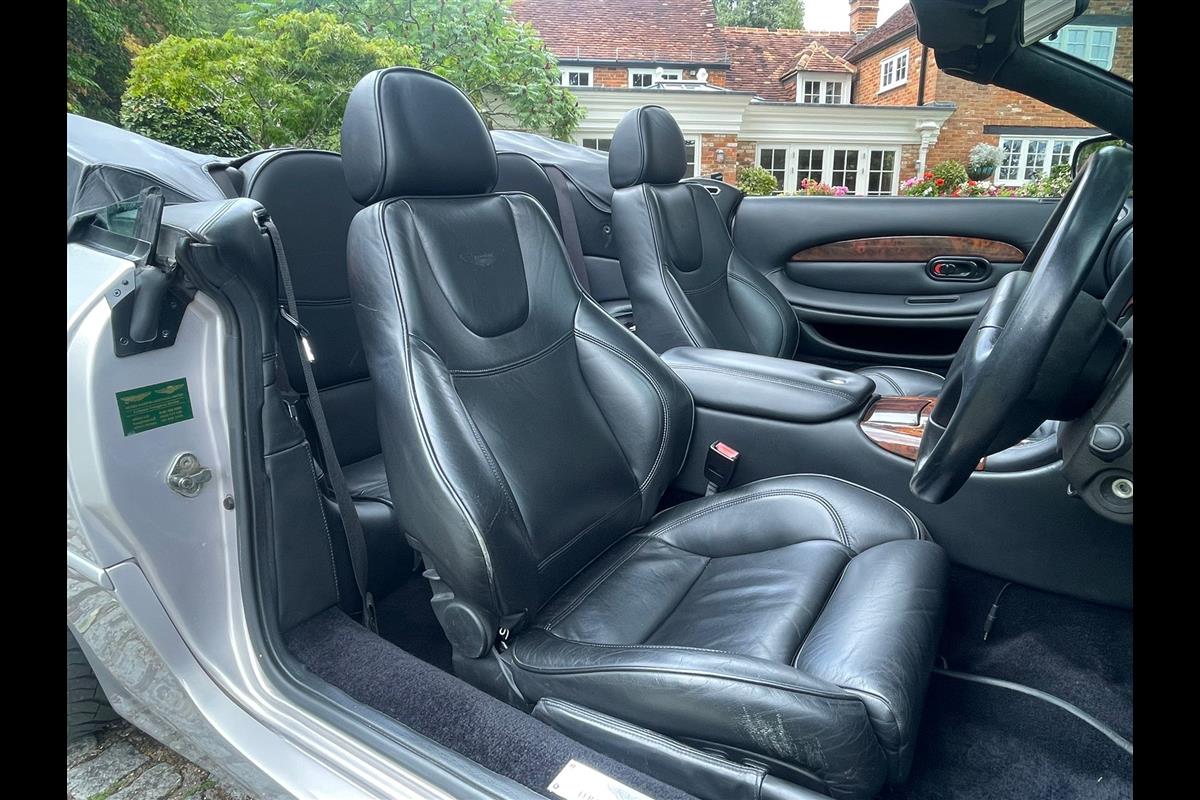 There is also a black leather tonneau cover, a wind deflector, Aston umbrella, Aston battery charger, upgraded Becker radio, Aston soft car cover, upper and lower front mesh grilles and to top it all off an original Aston sports exhaust system plus the cherished number plate W777 AML