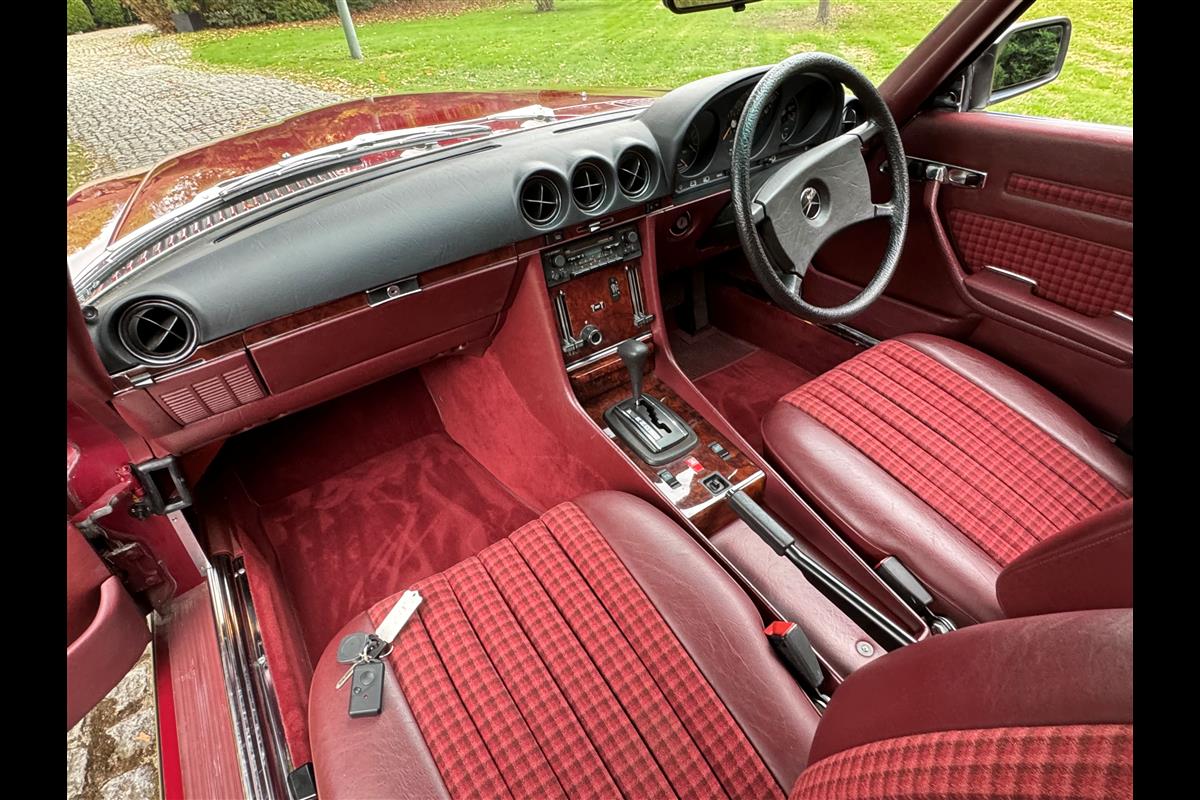 This beautiful Mercedes 280SL is just out of a virtual 15 year hibernation, during which time it has only been allowed out for its annual servicing and MOT inspections. It would appear from the 32 MOT certificates chronologically filed in the car's history file, that this lovely car has never failed an MOT test. It has had only one driver from when it was new in January 1985 and was initially registered to Arthur Anderson and Company in London as a director's company car. Subsequently registered to the 2nd owner on his retirement from Arthur Anderson in 1992 with an approximate recorded mileage at the time of 17,500. Since then it has been very sparingly used due to the diminished health of the owner who has now sadly passed away. From day one, the car has always been garaged and was supplied by Hughes of Beaconsfield who carried out all of the servicing up until 1992 and has since been looked by two well qualified local garages, the invoices for which are retained in the car file. Hence this car has been very well mechanically maintained and both the bodywork and interior have been extremely well kept and only very minor improvements are now required to make it perfect for what is now a 40 year old motor car. Recently serviced and fitted with a new set of tyres, it is now ready to be enjoyed by the next fortunate owner and realistically priced at £29,950