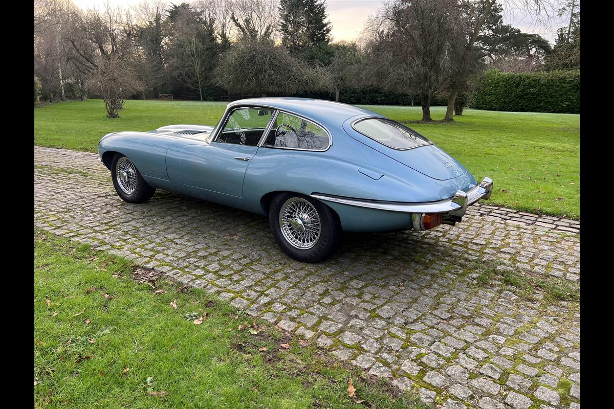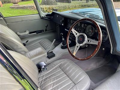 1970 Jaguar E type SII FHC in Opalescent Pale Blue with contrasting Grey hide interior. This is a beautiful and extremely well cared for original right hand drive, UK supplied example that I have known for the past 10 years, when it was acquired by a close friend who sadly passed away just before Christmas. He was a BRDC member with a long motoring history and he will be sadly missed. He purchased this E type about 10 years ago and it was his pride and joy and it was put to good use on various tours with the Guild of Motoring Writers of which he was a long term member. On viewing the car, you will find that the manner in which it has been kept and the resulting exceptional condition speaks for itself. Finished in one of the best colour combinations and sitting on perfect chrome wire wheels, it comes with an extremely detailed history file showing regular maintainance during his ownership and before. It is an absolute joy to drive and will undoubtedly bring a lot of pleasure to the next lucky owner. Please contact Martin Brewer for more detailed information.