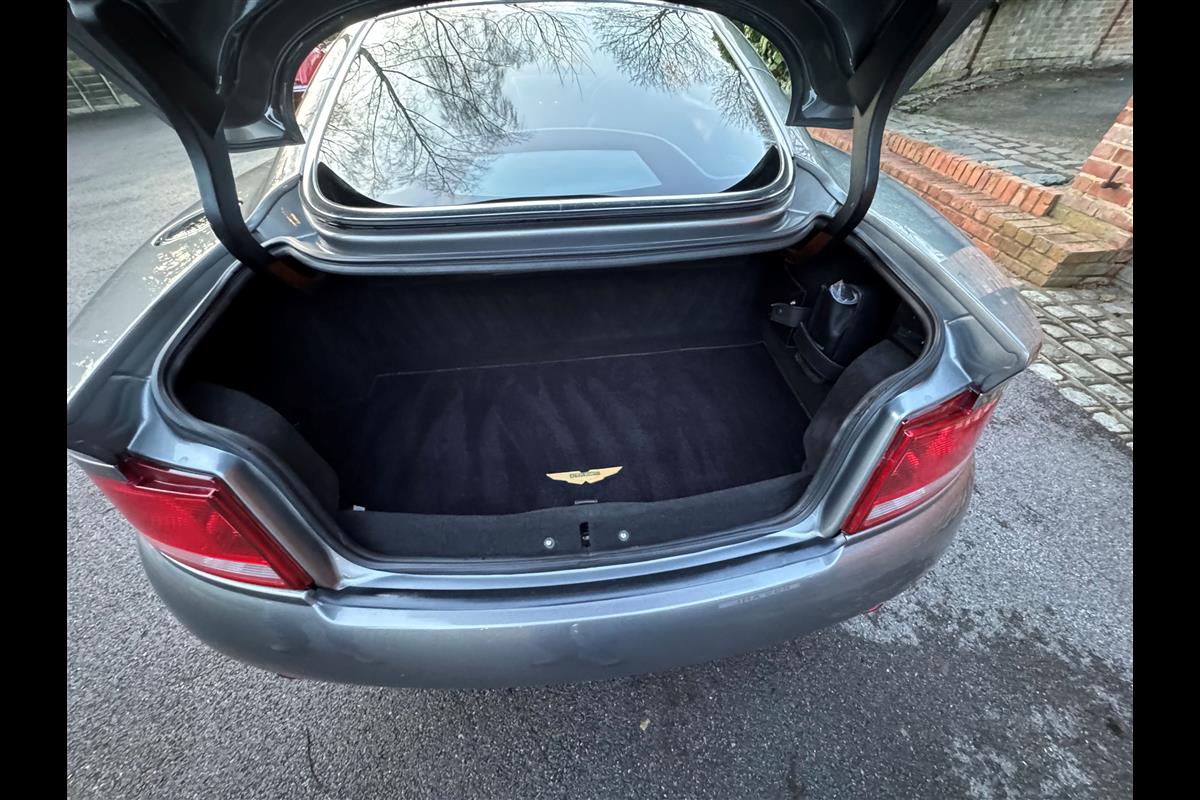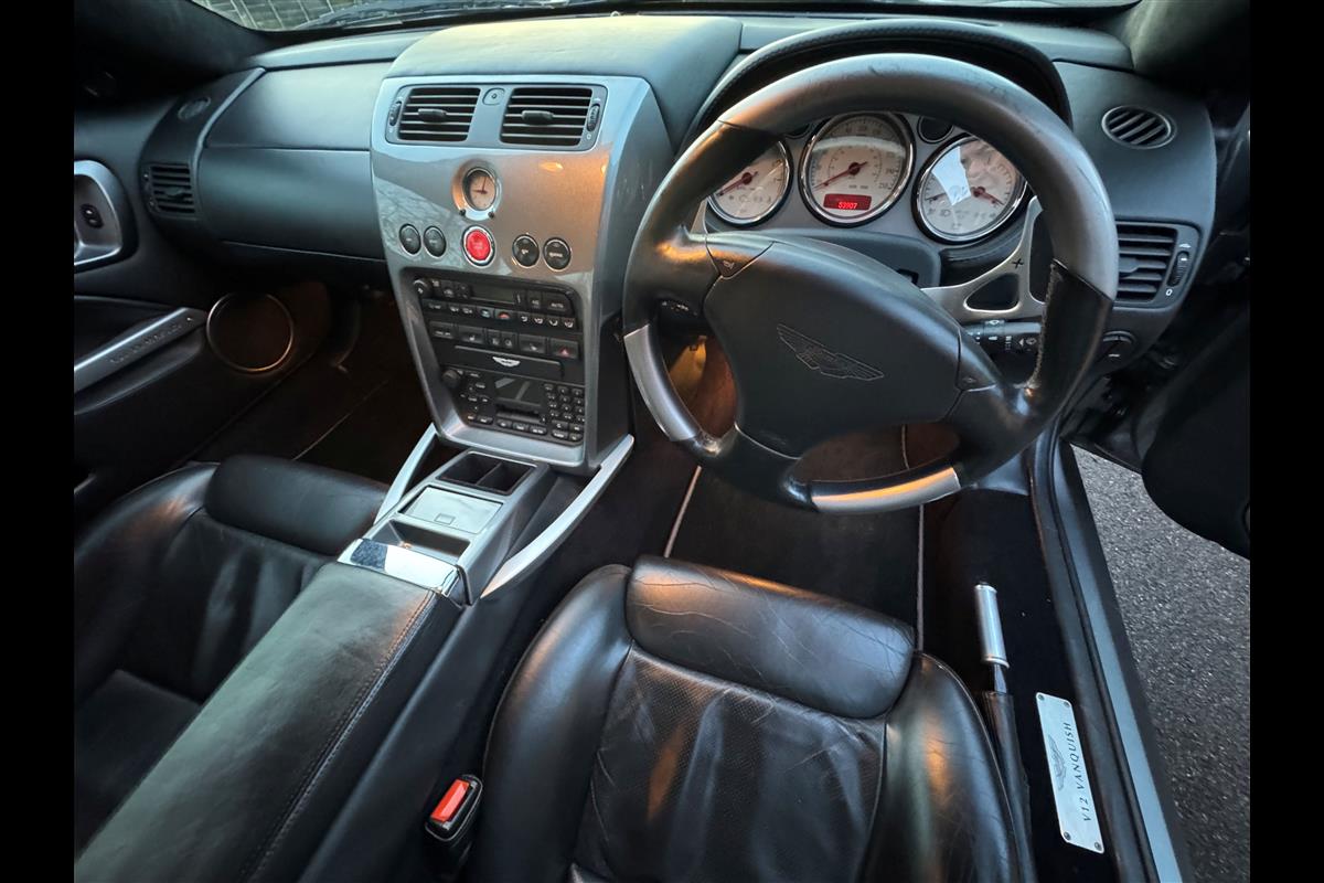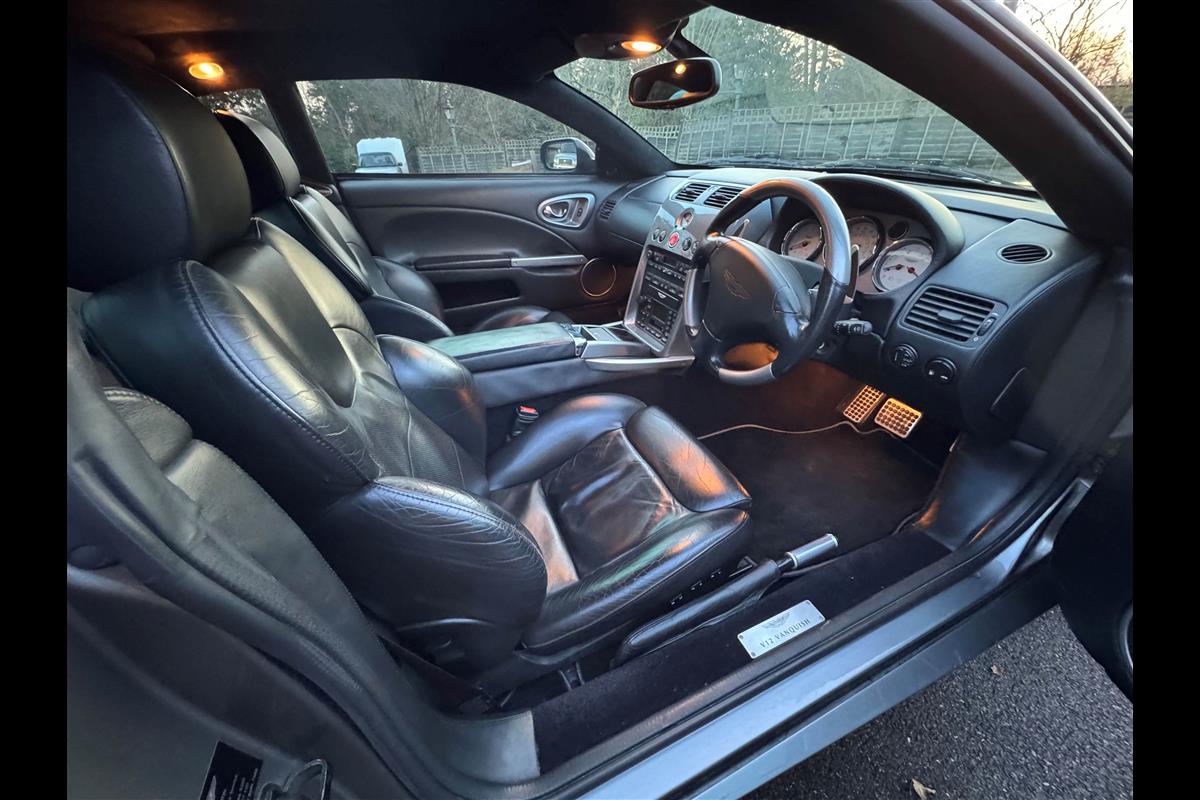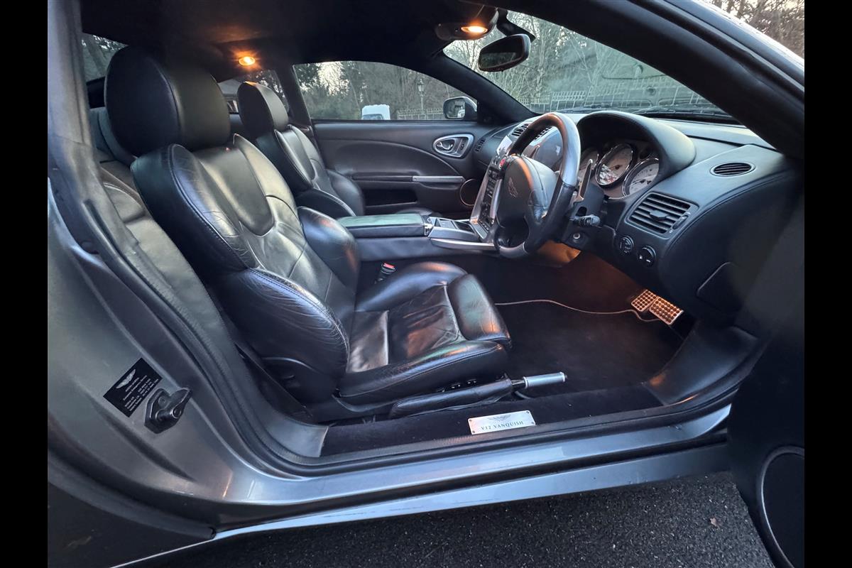 2002 Aston Martin Vanquish 2+2 in fabulous condition throughout, finished in Tungsten Silver with contrasting Charcoal hide interior. This a superbly kept unmarked example that has covered just under 54,000 miles and was purchased by the present owner in 2016. The car was originally supplied by “Aston Works Service” in Newport Pagnell who also carried out the servicing during 2003. The service book also contains stamps from Stratstone in Wilmslow through to 2009 at 37,456 miles and a single service by JCT 600 in Leeds during 2011 at 38,000 miles. We believe that the car then changed ownership to a gentleman in Kent, as between 2011 and 2016 it was regularly serviced by a specialist in southeast London. Bamford Rose also carried out a single service in March 2016 at 42,600 miles, after which in September 2017 it was sent to RS Williams in Cobham at 43,631 miles for a new Vanquish “S” clutch assembly and magnetic sensor at a cost in excess of £10,000. Since 2017, the car has been regularly maintained and upgraded by David Such at V12Vanquish.com with every invoice present in the car file. The standard Vanquish specification includes 6 speed semi-automatic transmission via Paddle-shift with sport mode and traction control, electrically operated heated seats with lumber support, Linn HIFI with multiple speakers, pale grey Alcantara headlining, fully adjustable steering column, heated front and rear screens, driver and passenger air bags and 19” multi-spoke allow wheels with high speed rated tyres. These Vanquishes are now very collectable and this superb example is very sensibly priced for one in this condition at £42,950