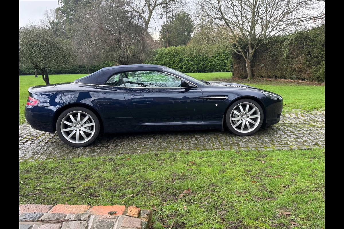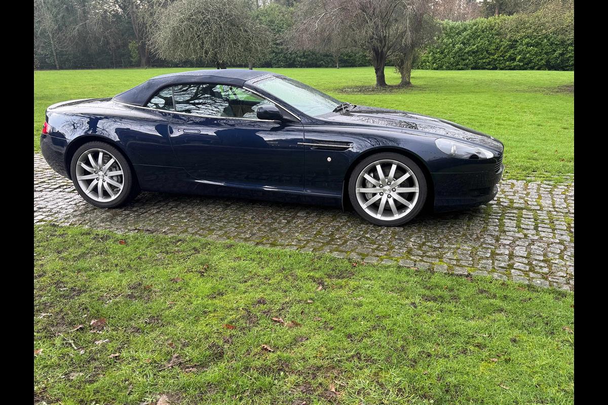 2007 Aston Martin DB9 Volante finished in Oxford Blue with a beautiful and very rare two tone dark blue and light sand beige hide interior and a dark blue mohair soft top. This low mileage motor car has had just two owners from new, the most recent of whom has owned it since it was less than 2 years old. Always annually serviced at HWM Aston Martin in Walton on Thames with 18 service stamps in the service book. It also comes with a complete MOT history and has never failed a test. We believe that the specification includes every extra that was available at the time of purchase and it reads as follows. Climate Control, Satellite navigation and blue tooth connectivity, electric heated memory sports seats with lumbar support, fully adjustable steering column, high spec Hifi system with CD player, multi-spoke alloy wheels with pale grey callipers, traction control, cruise control, a fully retractable electric mohair soft top, a wind deflector and power fold heated mirrors. In the boot of the car is the original Aston Martin umbrella, the original battery conditioner together with the tyre pump. We cannot stress enough just how good this car is to drive, which we deduce is mainly due to the level of regular maintenance, despite there often being only minimal mileage covered between services. Cost new was in the region of £135,000 and hence now incredible value at only £34,950 More pictures to follow after the rain.