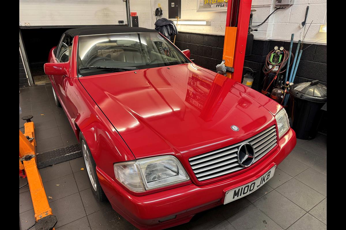 This bright red 1994 Mercedes 280SL has recentley arrived in part exchange against a Bentley Arnage Red Label. Not our normal stock but nevertheless it comes in nice all round condition for an attractive sportscar that is now 32 years old. Mercedes build quality in the early 90's was renowned throughout the motor industry for its superb finish and utter reliability. Both paintwork and interior trim of this motorcar are in very nice condition and judging by the number of service invoices that accompany the car, it has also been well cared for from a mechanical point of view. The interior is very well specified with full leather trim extending to the optional rear seats that are best suited for small children. The interior is complimented with Walnut veneers and the car has a removal hard top, beneath which is an easily errected soft top. The car sits on eight hole Mercedes alloy wheels and is a pleasure to drive. Not expensive in today's market place at £6,950 (Mre pctures when the rain eventually stops)