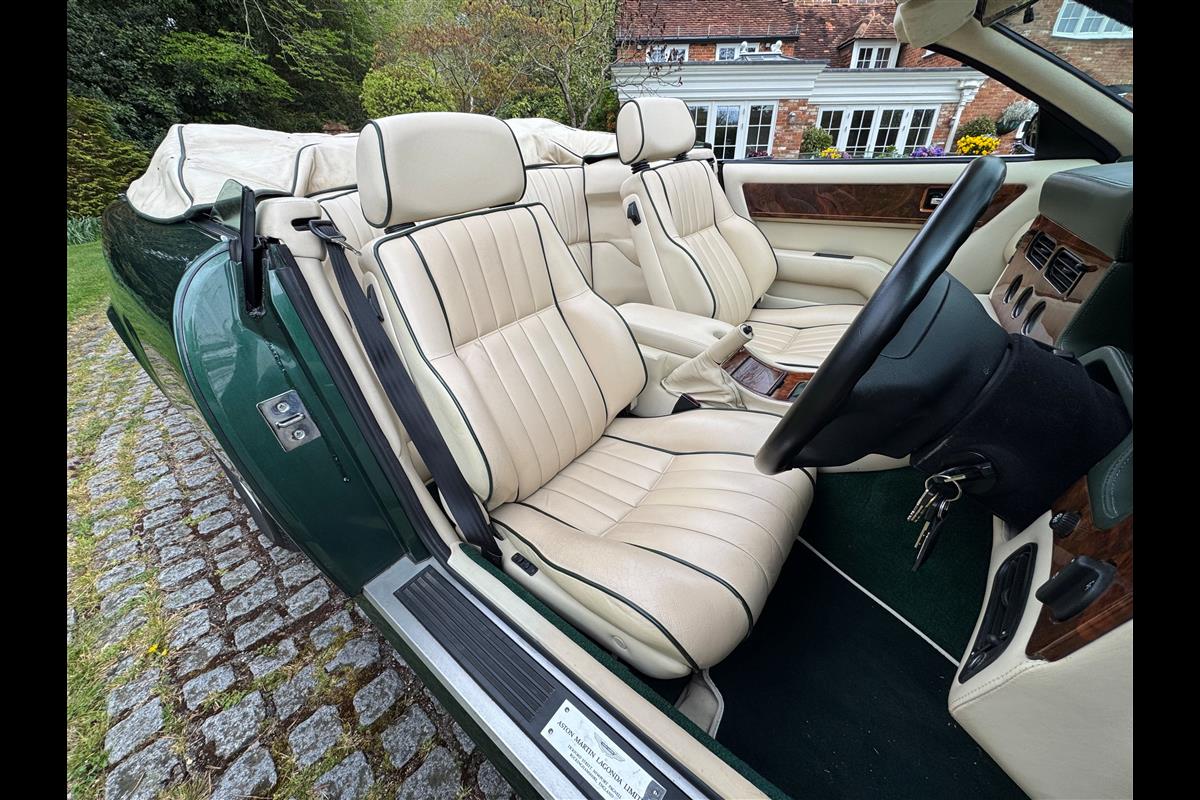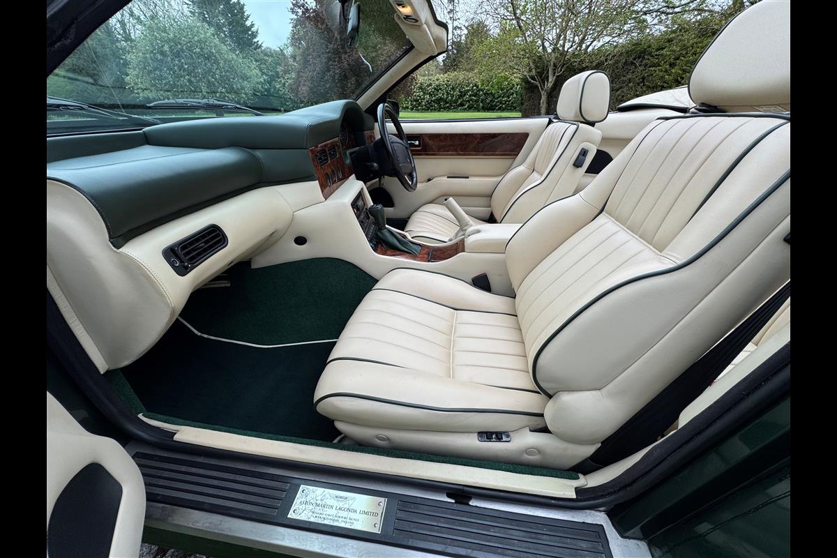 1993 Aston Martin Virage Volante finished in Buckinghamshire Green with Parchment leather piped in dark green. It has a Black mohair hood with parchment Alcantara headlining, Green Wilton carpets throughout with parchment piping. This is without question one of the finest and most desirable Virage Volante's we have had the pleasure of offering for sale. It has covered a mere 17,500 miles from new the interior is beautifully original and the bodywork and paintwork are totally stunning. The Aston Martin service history is up to date and complete and this car is a real pleasure to drive. Only 121 Right Hand Drive Virage Volante's were ever built making this extremely low mileage example, very rare indeed. This is a golden opportunity to purchase what has now become a classic Aston Martin at a realistic price for one in this exemplary condition. £69,950