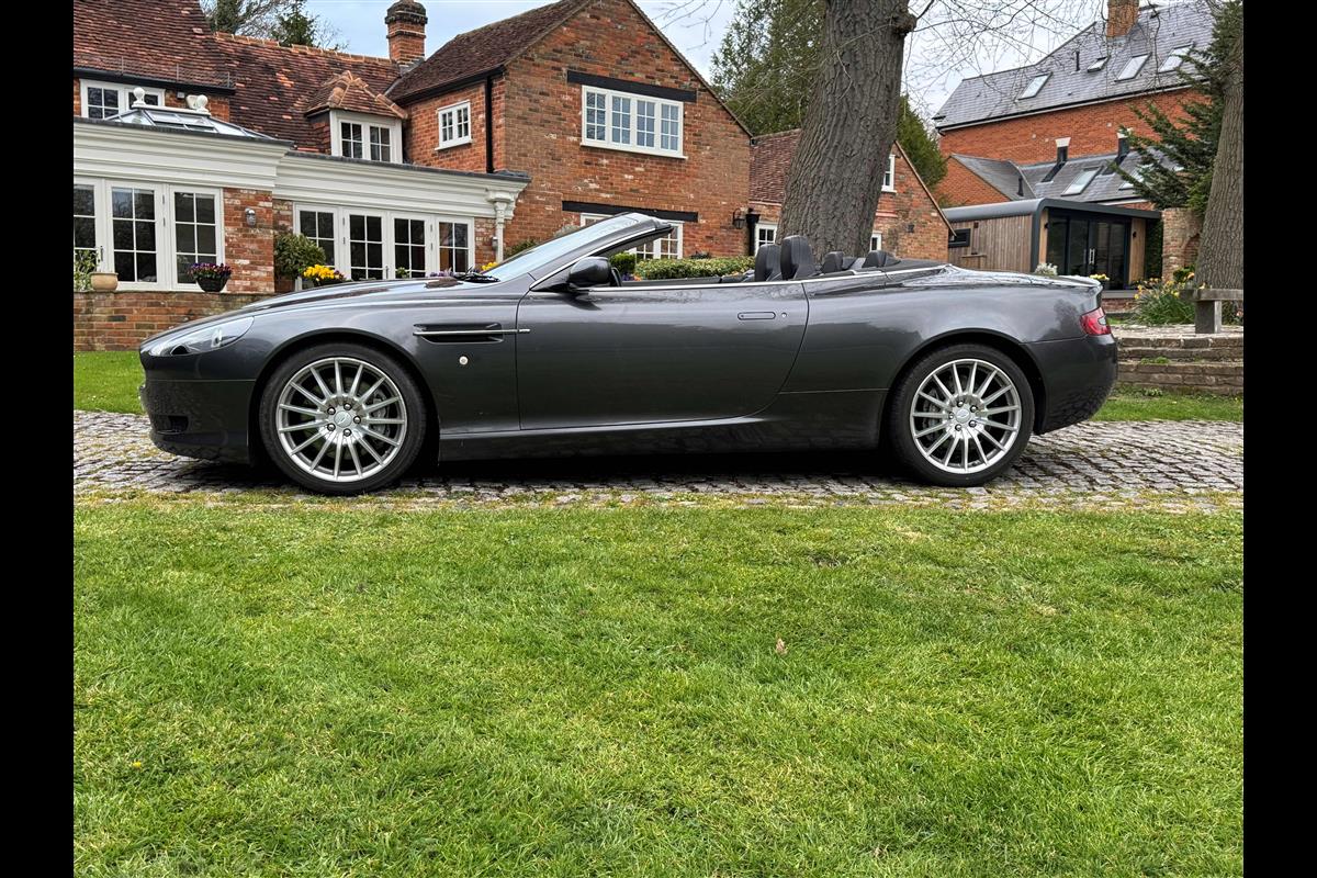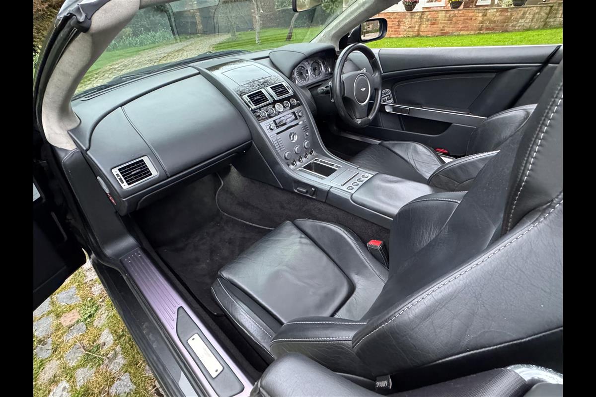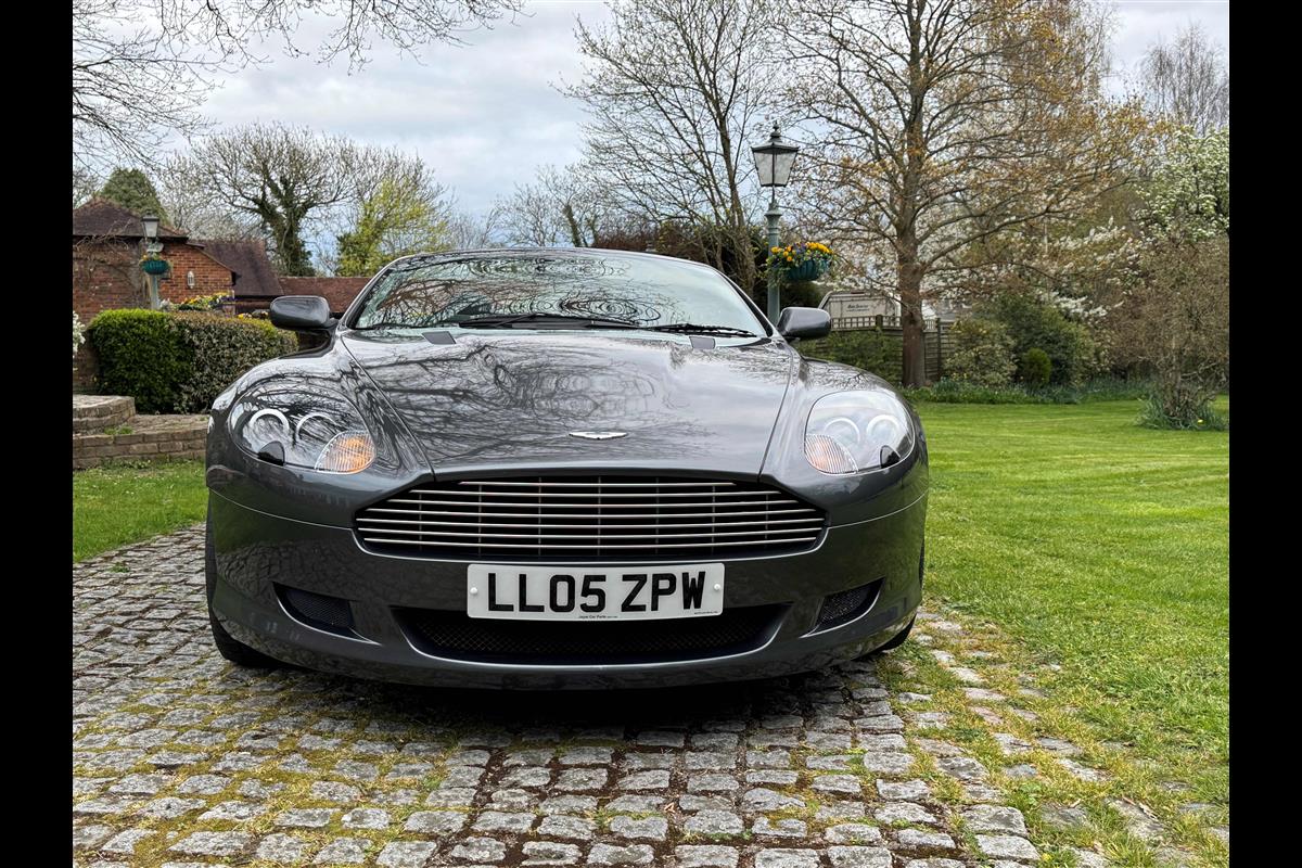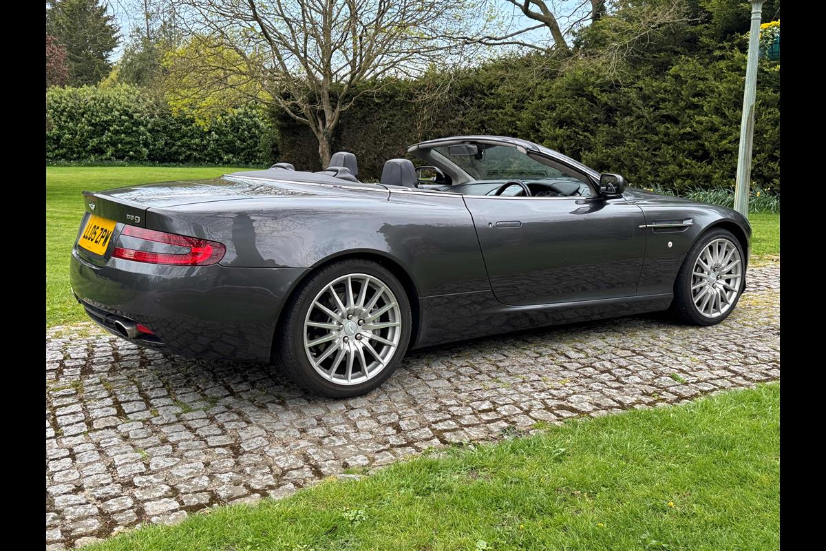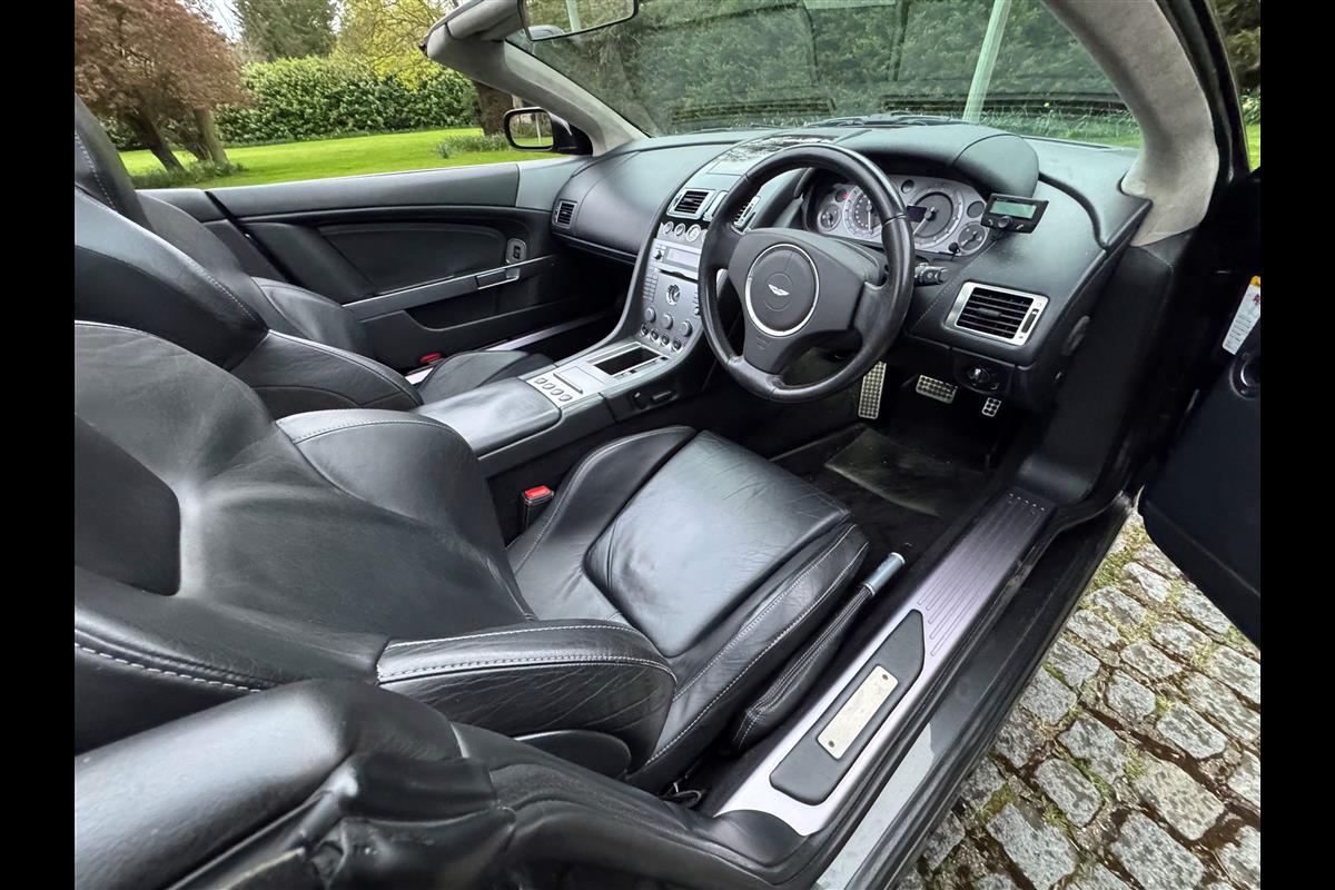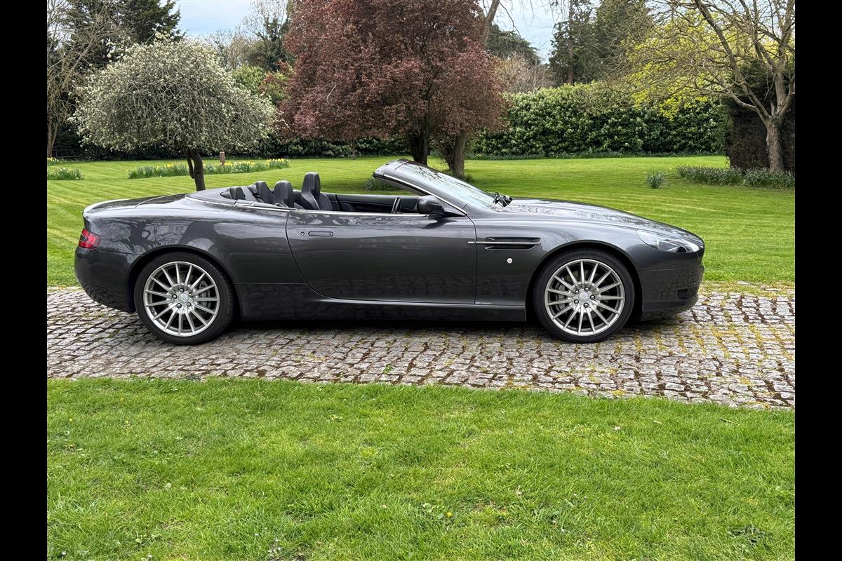 This 2005 Aston Martin DB9 Volante was supplied by us as a single owner motor car back in 2013 to the last owner and is now only available for sale due to berheavement. During the past 13 years it has covered only 10,600 miles and has always been garaged as becomes immediately obvious by its current condition. Finished in Meteorite Silver with Onyx black hide interior with white stitching and a fully retractable black mohair hood and the car is in superb condition throughout. The additional specification includes climate control, satelite navigation, electric heated memory seats with lumbar support, a fully adjustable steering column, electric heated mirrors, a piano black centre console, a bright finish grille and multi spoke 19" alloy wheels. it has fully automatic transmission with sport mode and paddle shift override giving full control in every driving circumstance.