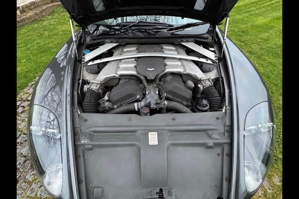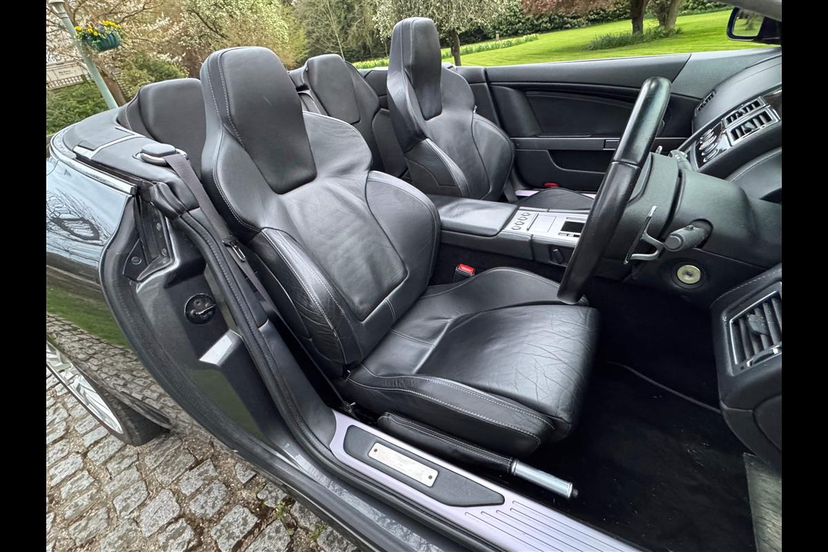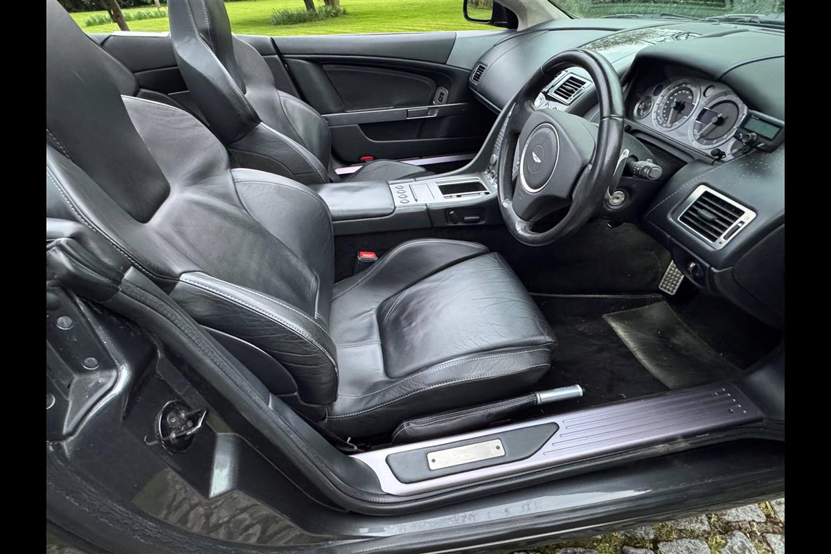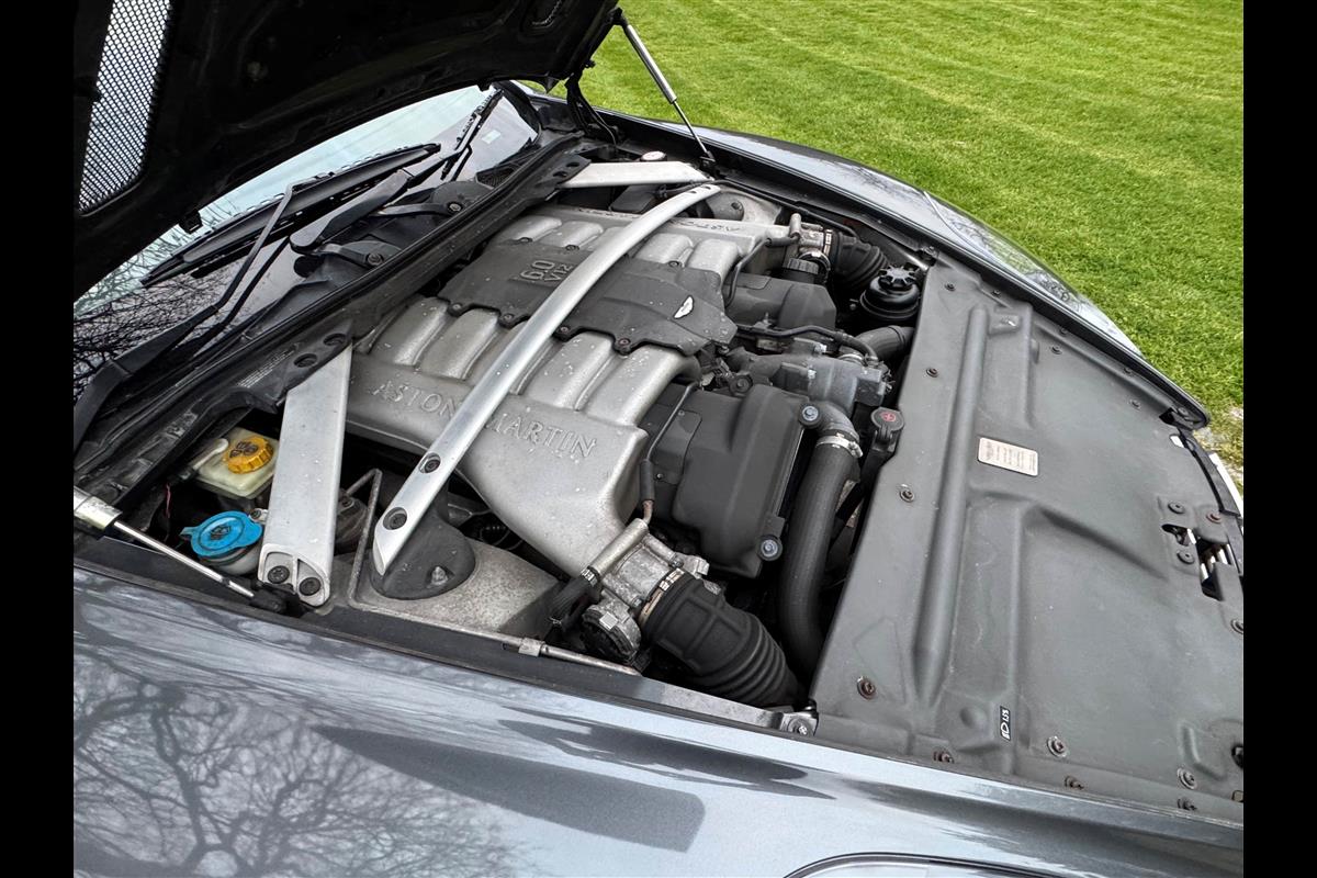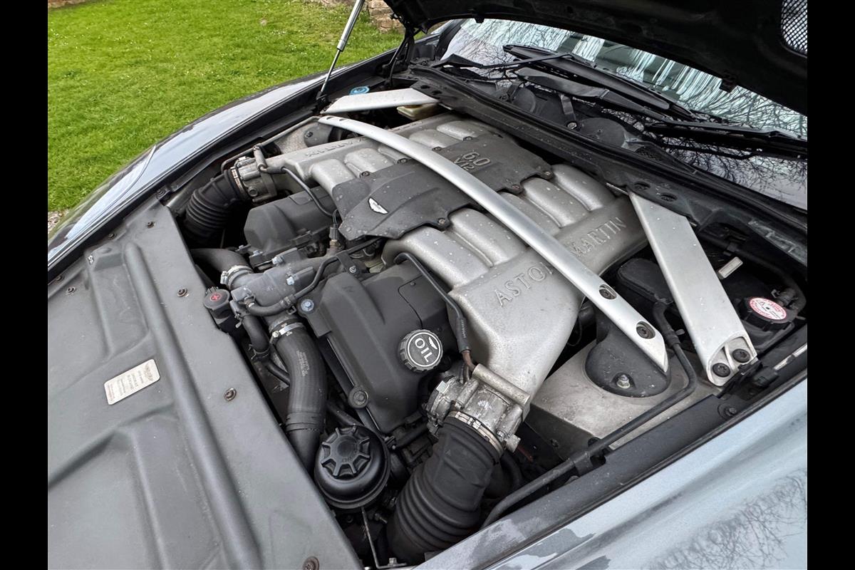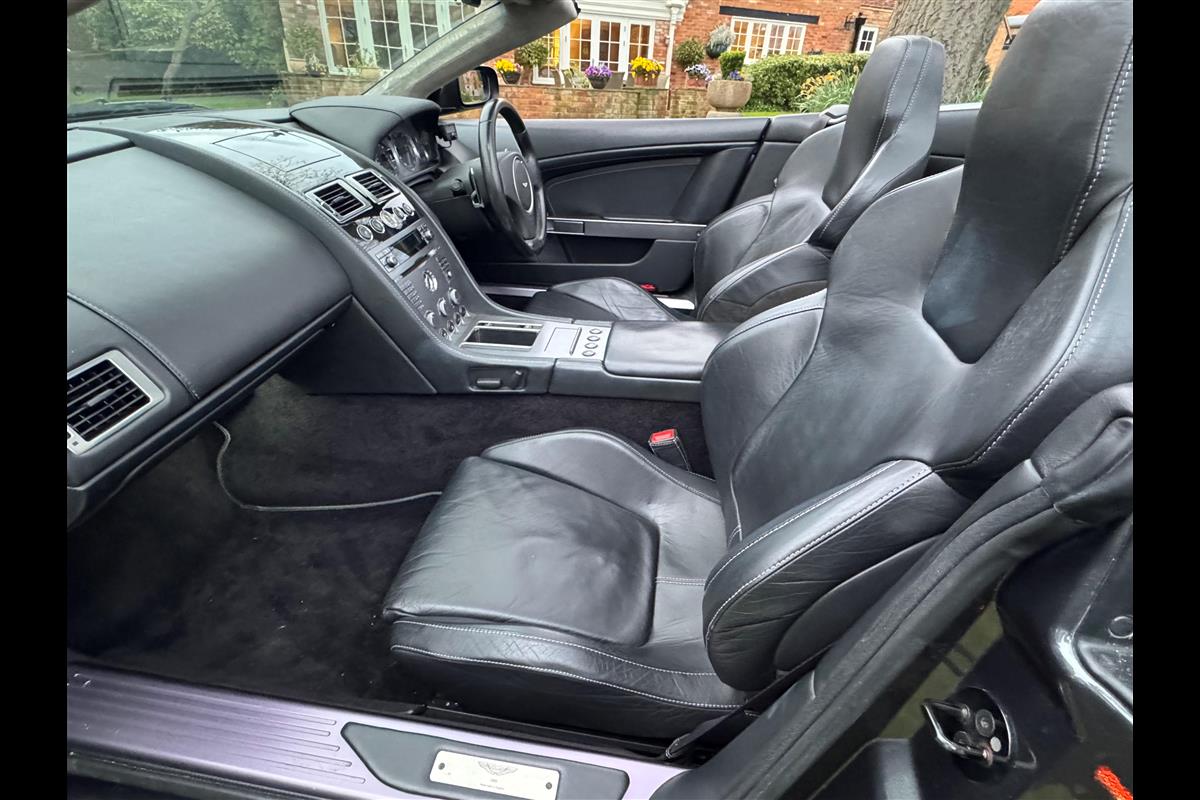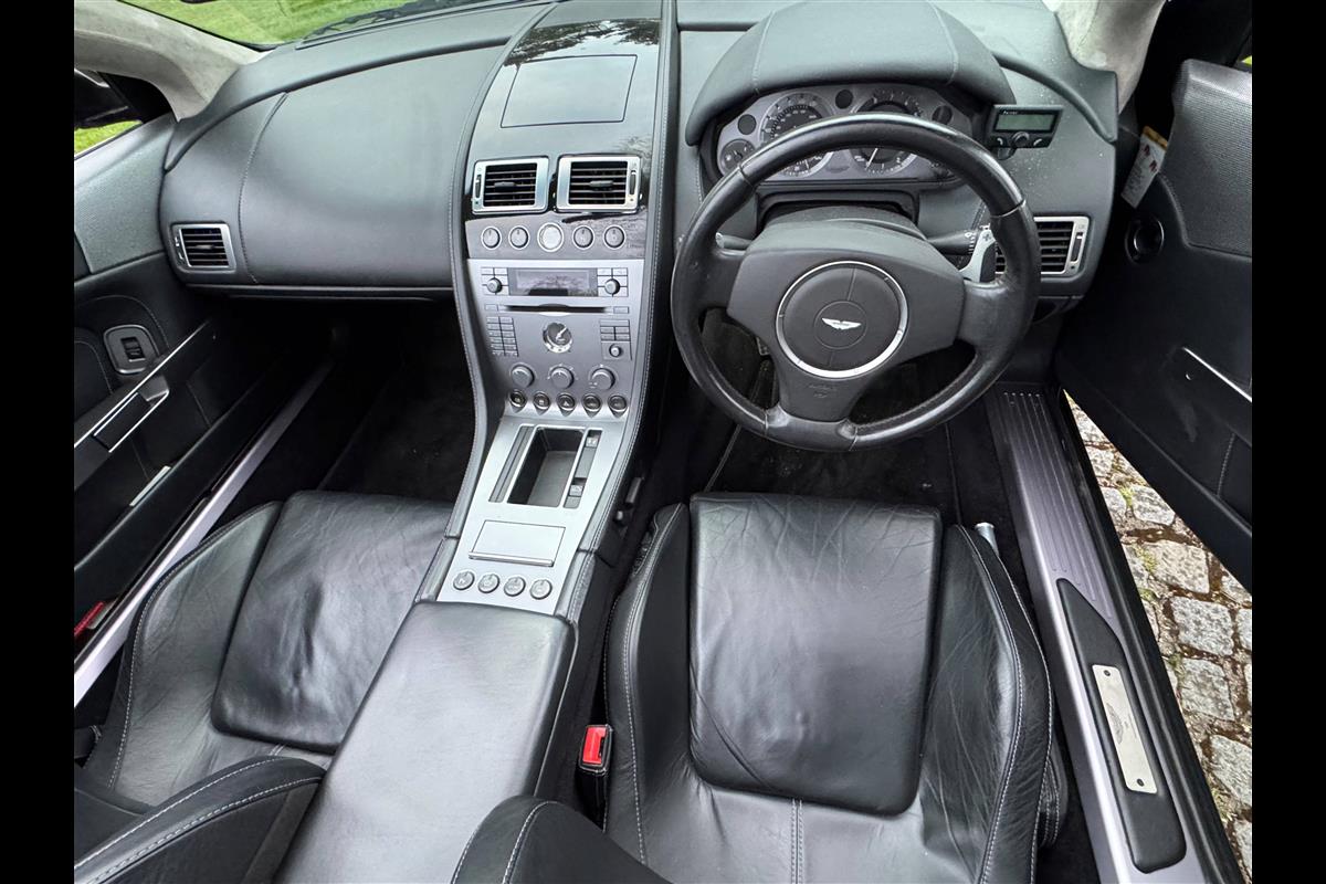 This 2005 Aston Martin DB9 Volante was supplied by us as a single owner motor car back in 2013 to the last owner and is now only available for sale due to berheavement. During the past 13 years it has covered only 10,600 miles and has always been garaged as becomes immediately obvious by its current condition. Finished in Meteorite Silver with Onyx black hide interior with white stitching and a fully retractable black mohair hood and the car is in superb condition throughout. The additional specification includes climate control, satelite navigation, electric heated memory seats with lumbar support, a fully adjustable steering column, electric heated mirrors, a piano black centre console, a bright finish grille and multi spoke 19" alloy wheels. it has fully automatic transmission with sport mode and paddle shift override giving full control in every driving circumstance.