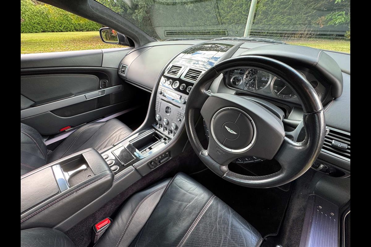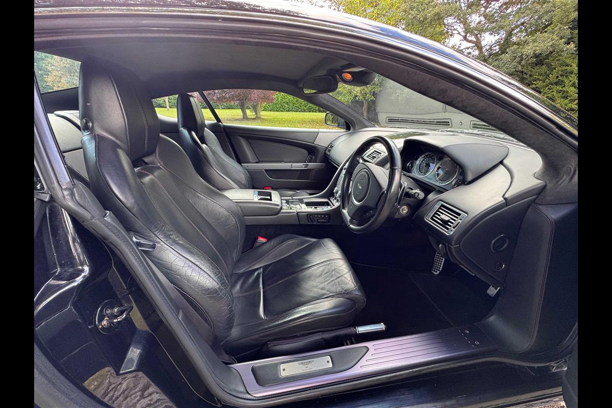 Finished in Onyx Black with Obsidian black hide interior with red stitching, this 2008 DB9 Coupe is in lovely condition throughout. The specification of these cars is always comprehensive and includes automatic transmission with paddle shift for the more enthusiastic driver. It has satellite navigation, climate control, electric heated seats with lumbar support and a fully adjustable steering column. Also fitted is a CD player, Piano black centre console, Powerfold mirrors, high spec Hifi, a black Alcantara headlining, Sport Pack 5 spoke alloys and red brake calipers. Having covered only 45,000 miles, it has remained in superb condition and comes with a full-service history. Priced really competitively for one in this excellent condition at only £31,950