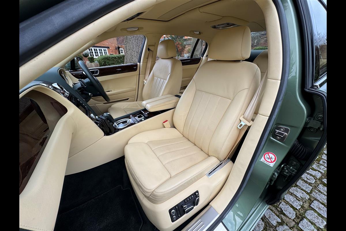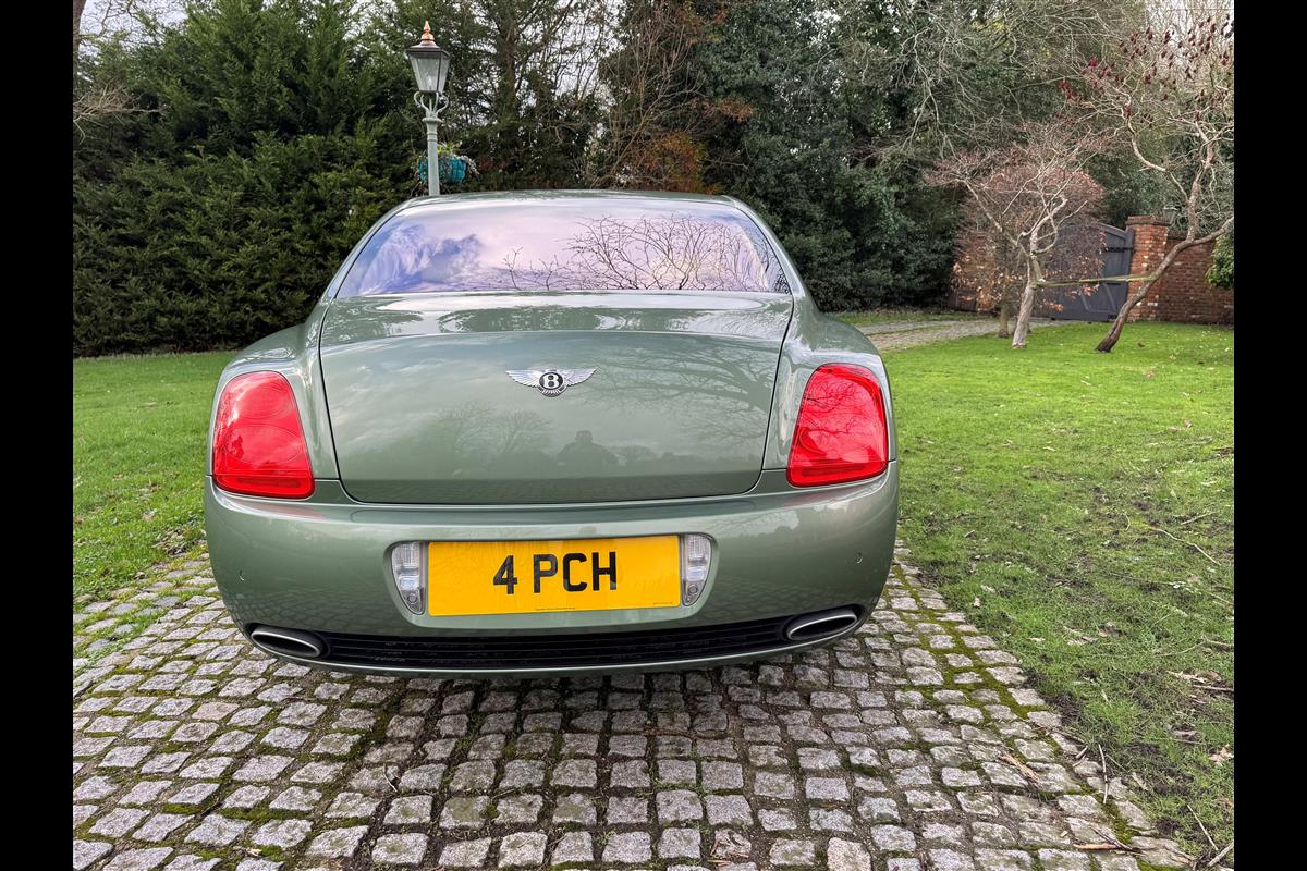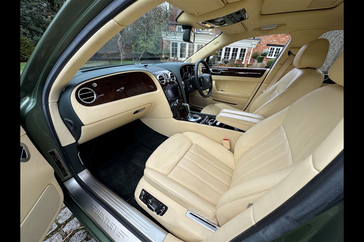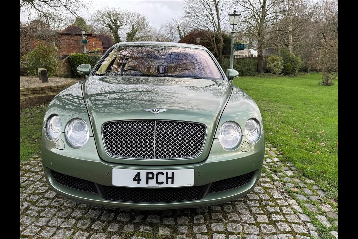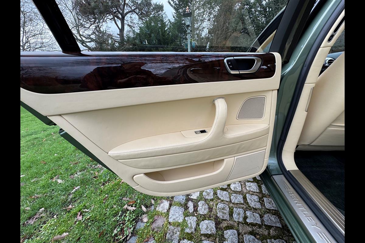 This exceptionally low mileage (8,986 miles) 2007 Bentley Continental Flying Spur was purchased from new by the Titled owner in August 2007 and has been used soleley for special occasions. This solitary owner has been a serious collector and car enthusiast for many years and the car has formed part of an interesting and diverse collection. Purchased new from Jack Barclay at a cost of £136,720, the car is finished in a special order colour of Alpine green with a stunning unmarked interior finshed in Magnolia hide with Spruce Dash top, best quality Wilton carpet throughout and Burr Walnut veneered rear picnic tables. The specification further includes a full length rear centre console at a cost of over £4,000, Satelite navigation, TV facility, an electric glass sun roof, 20" chome wheels, a Nav Trac security system and everything else one would expect in a car of this superior quality. It comes supplied with its original Bentley service book with 14 service stamps and a chronologically kept history file and15 mot certificates showing the very gradual progression of the recorded mileage. Unrepeatable value at £22,950