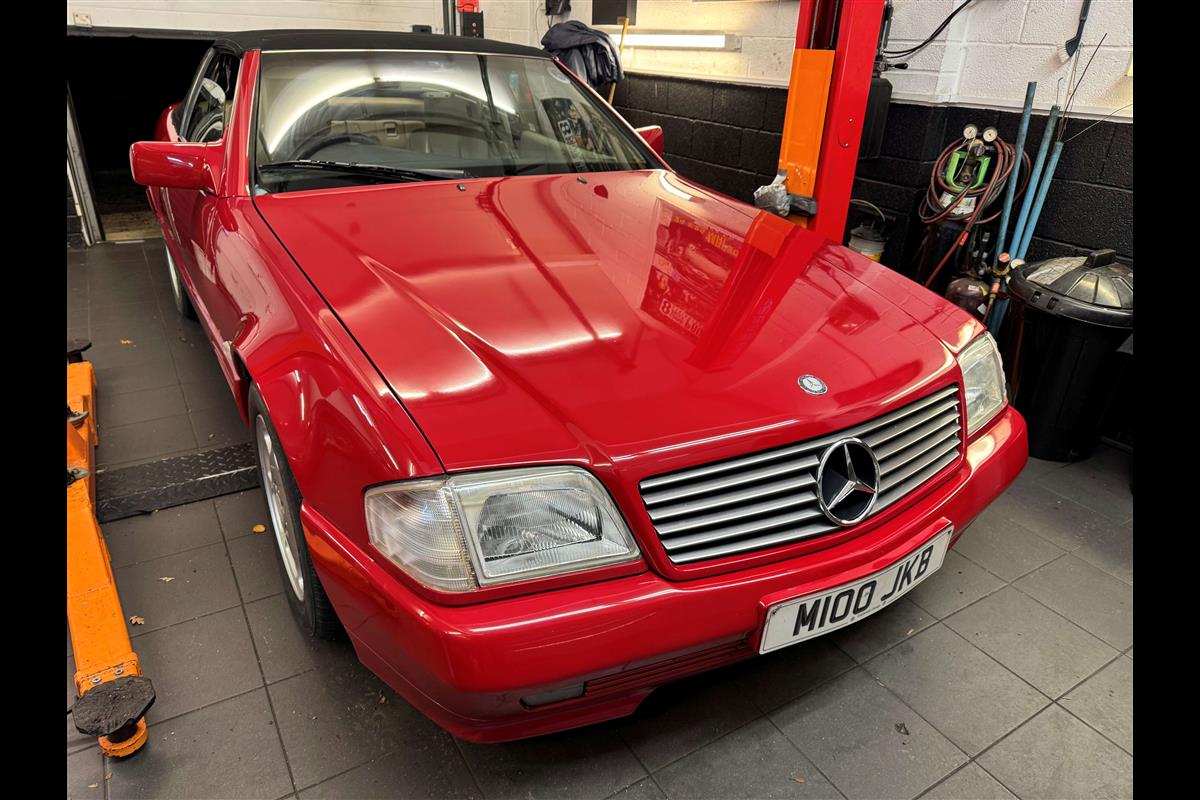 This bright red 1994 Mercedes 280SL has recentley arrived in part exchange against a Bentley Arnage Red Label. Not our normal stock but nevertheless it comes in nice all round condition for an attractive sportscar that is now 32 years old. Mercedes build quality in the early 90's was renowned throughout the motor industry for its superb finish and utter reliability. Both paintwork and interior trim of this motorcar are in very nice condition and judging by the number of service invoices that accompany the car, it has also been well cared for from a mechanical point of view. The interior is very well specified with full leather trim extending to the optional rear seats that are best suited for small children. The interior is complimented with Walnut veneers and the car has a removal hard top, beneath which is an easily errected soft top. The car sits on eight hole Mercedes alloy wheels and is a pleasure to drive. Not expensive in today's market place at £6,950 (Mre pctures when the rain eventually stops)