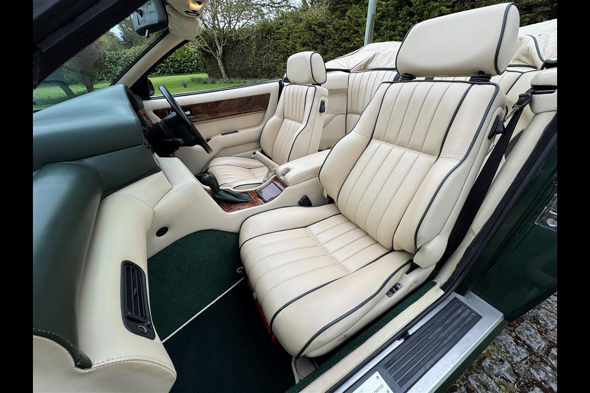 1993 Aston Martin Virage Volante finished in Buckinghamshire Green with Parchment leather piped in dark green. It has a Black mohair hood with parchment Alcantara headlining, Green Wilton carpets throughout with parchment piping. This is without question one of the finest and most desirable Virage Volante's we have had the pleasure of offering for sale. It has covered a mere 17,500 miles from new the interior is beautifully original and the bodywork and paintwork are totally stunning. The Aston Martin service history is up to date and complete and this car is a real pleasure to drive. Only 121 Right Hand Drive Virage Volante's were ever built making this extremely low mileage example, very rare indeed. This is a golden opportunity to purchase what has now become a classic Aston Martin at a realistic price for one in this exemplary condition. £69,950
