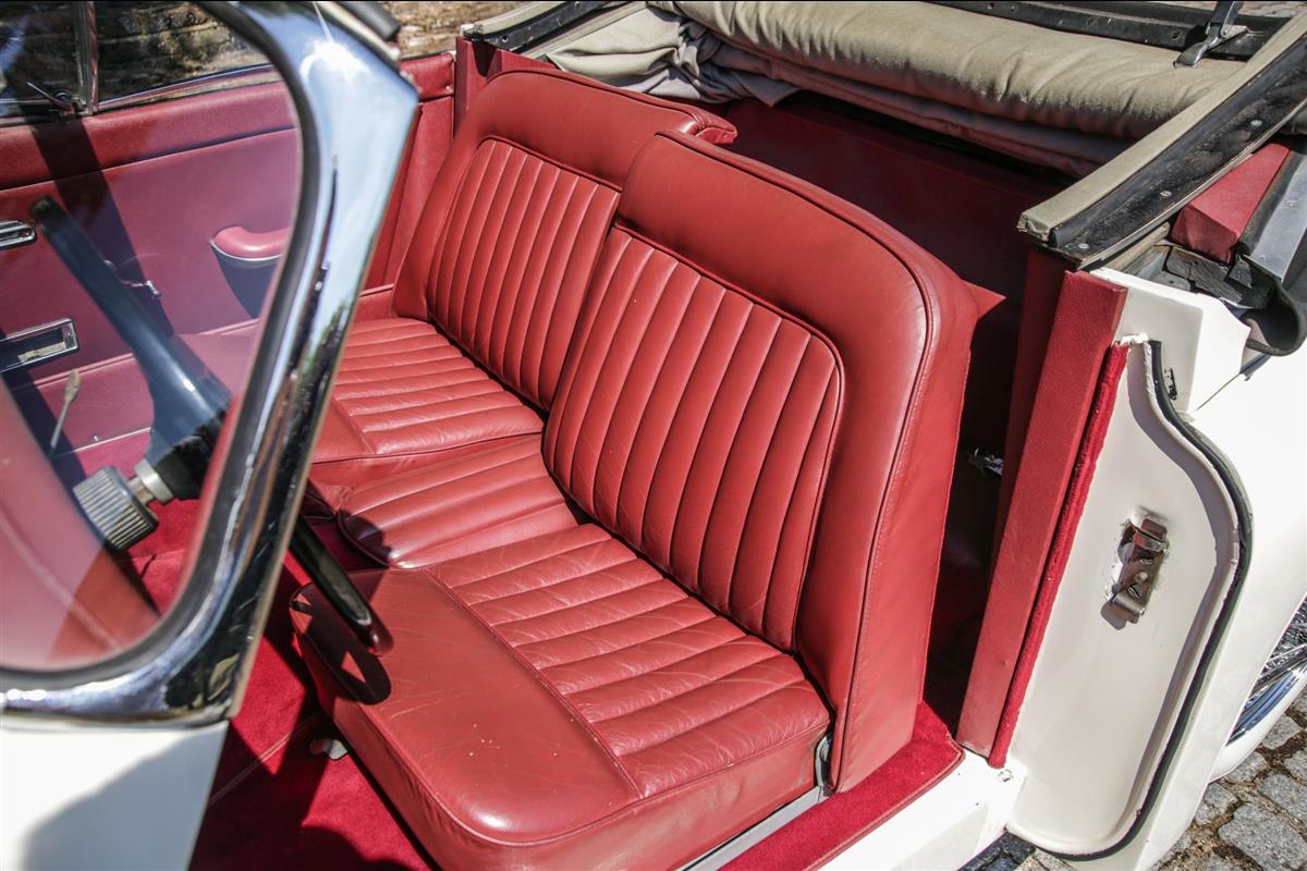 1958 Jaguar XK150 Drop Head Coupe finished in Old English White with contrasting red leather interior with best quality Wilton carpet throughout, all of which is in excellent condition. This is a completely rust free, matching numbers example that was repatriated into the UK in 1997 and has been in the ownership of the same family ever since and has been very well maintained. The shut lines of the doors bonnet and boot lid are all exceptionally good and the general finish of the paintwork is in fine condition for a car that is now in her 62nd year. Fitted from new with rare automatic transmission with the benefit of intermediate speed hold giving the driver full control of the preferred gear for any set of circumstances. I was amazed when driving this car for the first time just how relaxing the gearbox makes the whole driving experience. Contrary to popular belief, this car is light and very easy to drive and with the benefit of upgraded Coopercraft front brake callipers, it stops like a modern car. Sitting on 16” chrome wire wheels, shod with almost new, period style white wall tyres, the car has a very attractive 50’s appearance with more room inside compared to its XK120 and XK140 predecessors. The black mohair hood is also in excellent condition and is nicely lined in West of England cloth. We have made a thorough inspection of the underside of the car and the whole of the chassis is in remarkable condition, typical of a car that was first registered in California. Probably perfect for the more mature owner who wishes to participate in some of the Continental tours open to classic cars. Please note that if required we are able to convert this car from LHD to RHD and fit an original Jaguar four speed manual gearbox with overdrive, all at additional cost. The 321 JAG number plate is available by separate negotiation. Please enquire for more details. £75,000